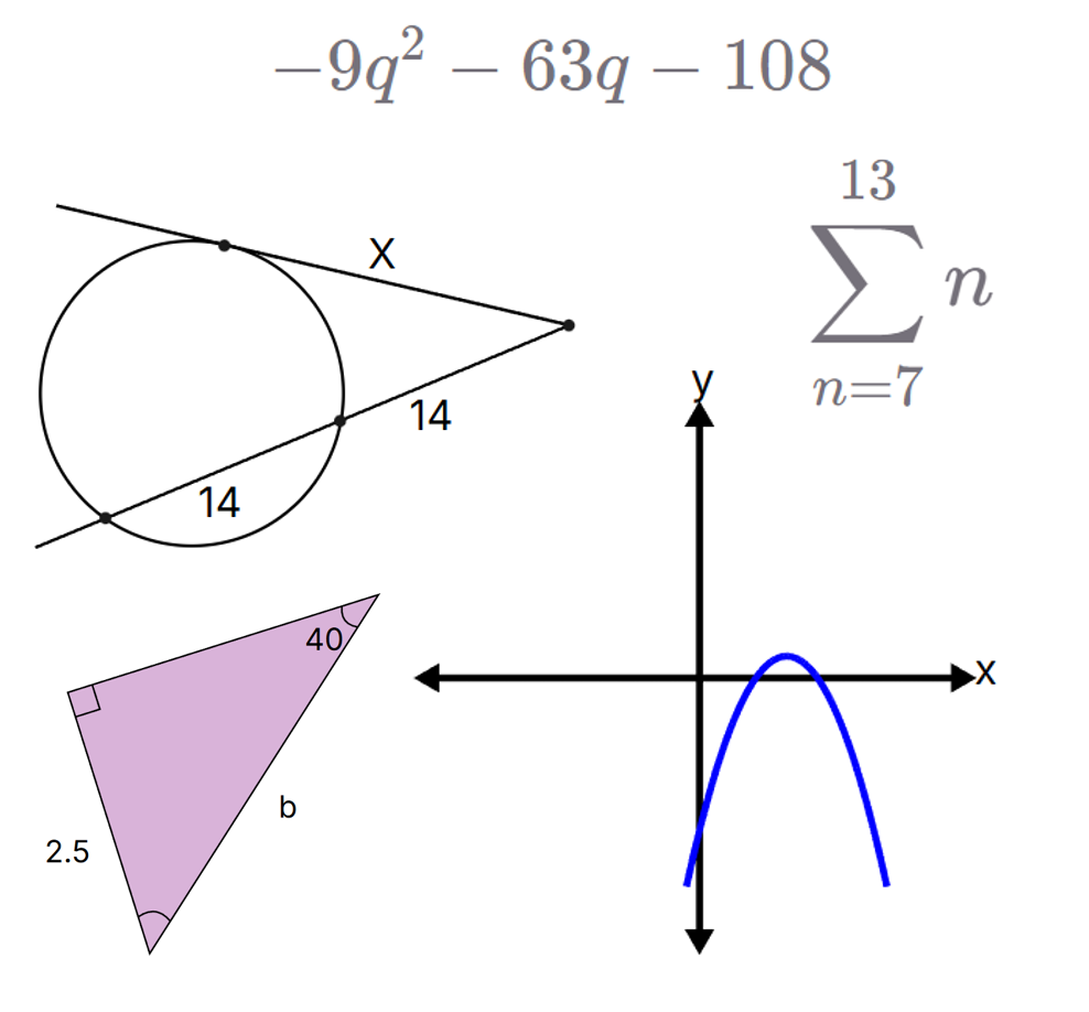 Trigonometry, functions, advanced geometry, probability, calculus.
