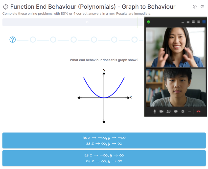 Each session is 45 minutes, guided by a live tutor, and students will usually do around 40 math problems.